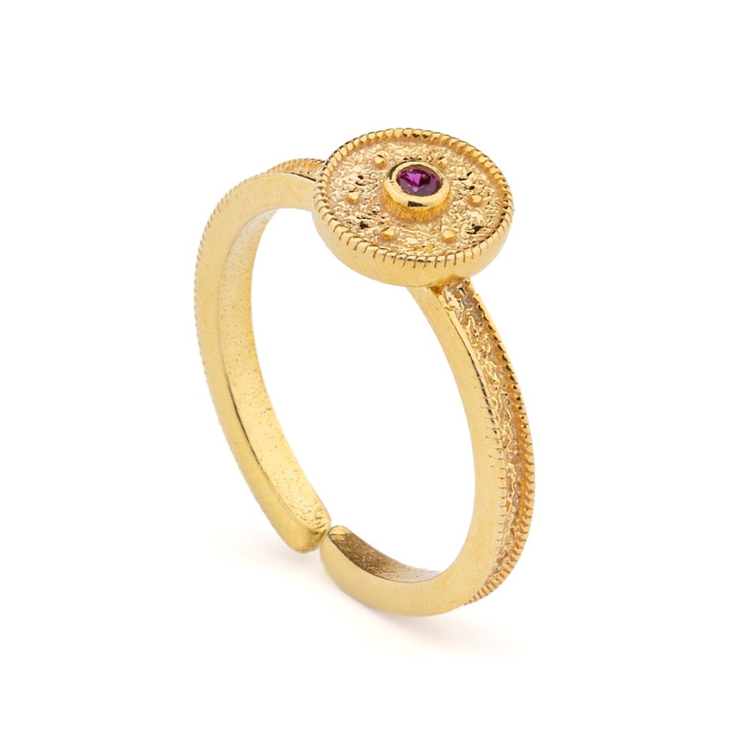 Byzantine Round Simple Ring in 925 Sterling Silver Gold-Plated with Zircon