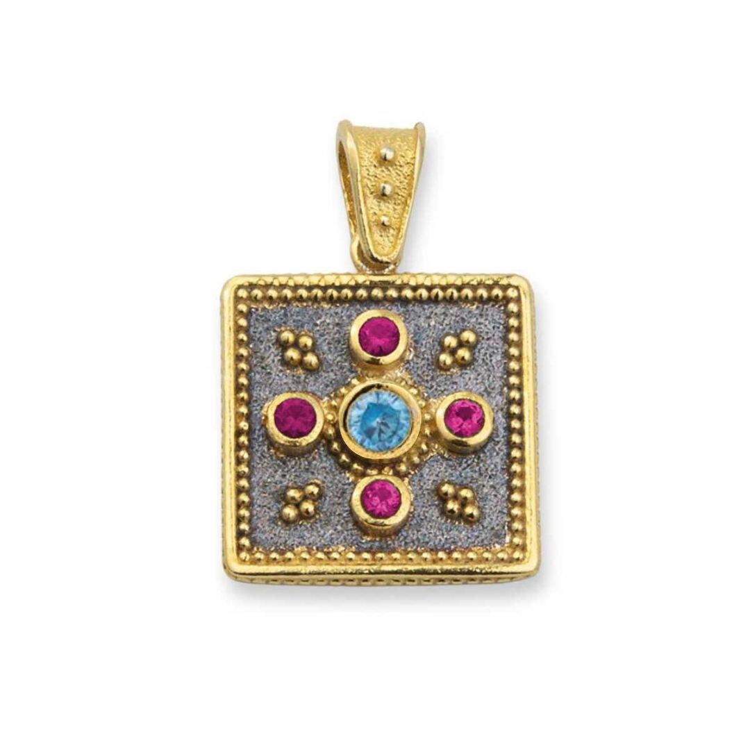 Byzantine Square Pendant with Multicolor Zircon Stone
