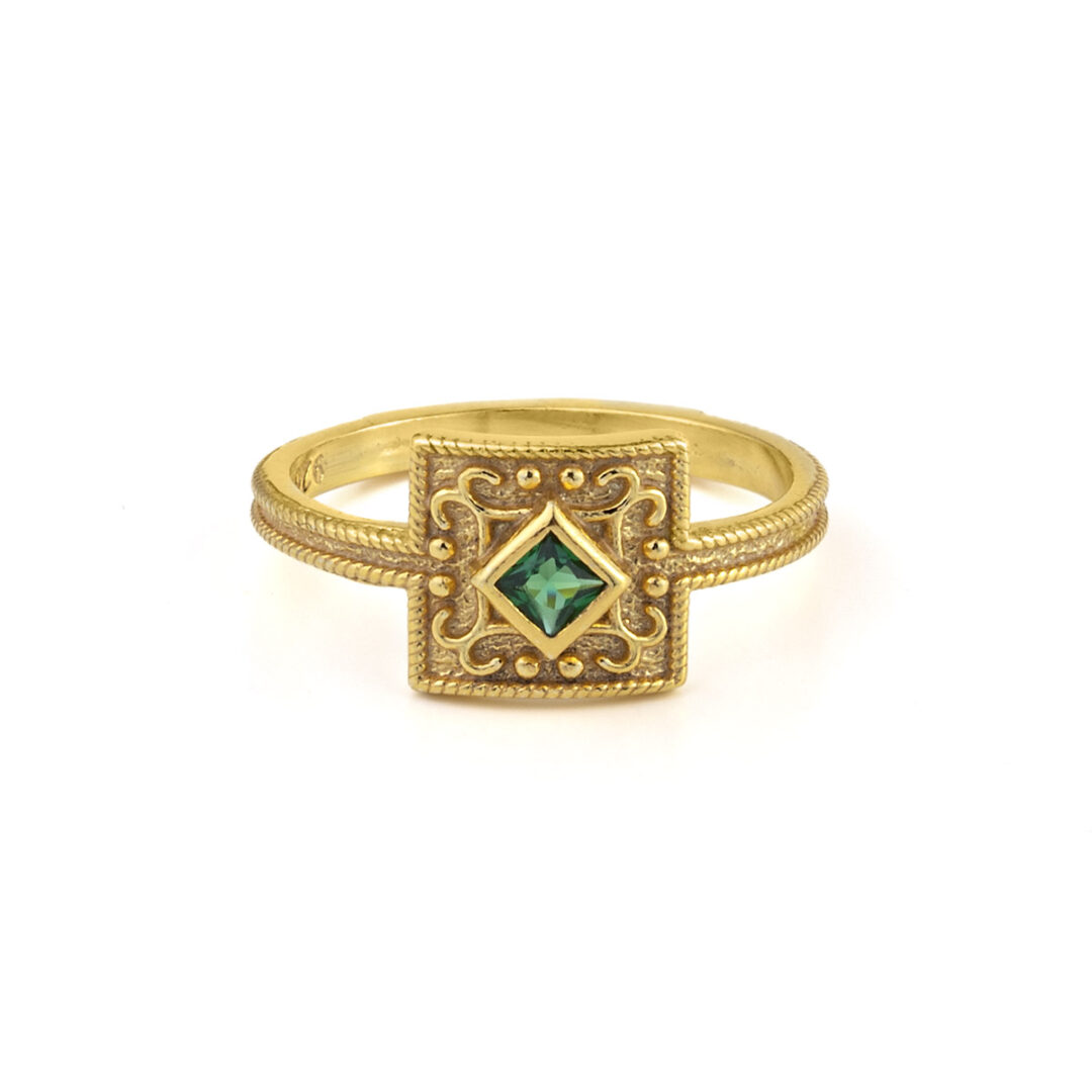 [vc_row][vc_column][vc_column_text css=”” woodmart_inline=”no” text_larger=”no”]Byzantine Square Ring with Stone – 925 Sterling Silver and Gold Plated
