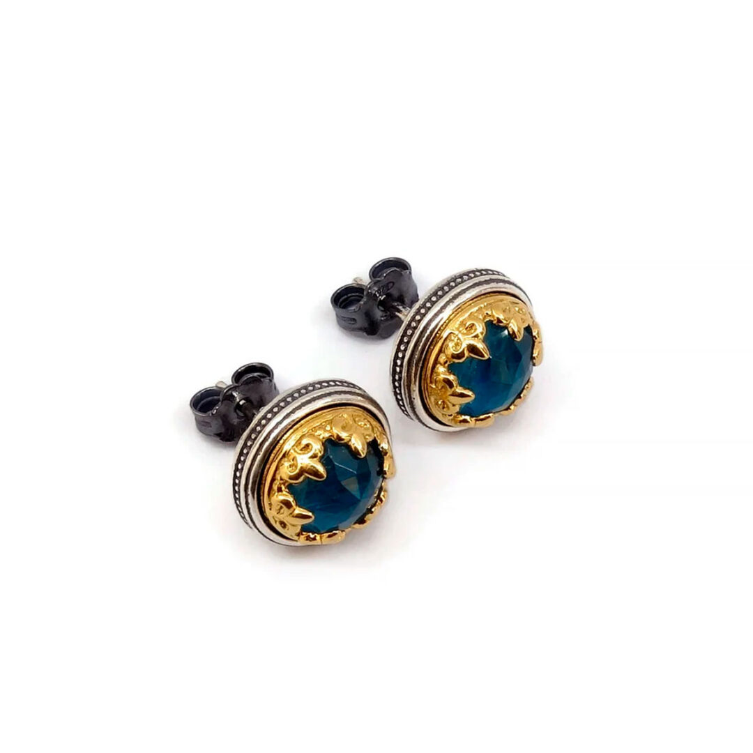 Byzantine stud earrings with doublet apatite 8mm round gemstone.