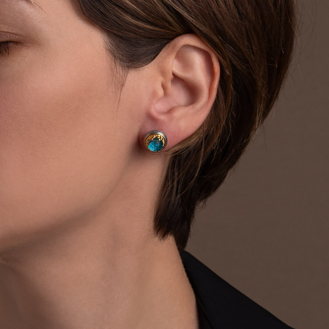 Byzantine Stud Earrings with Apatite Doublet Gemstone