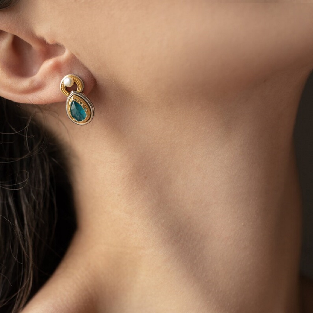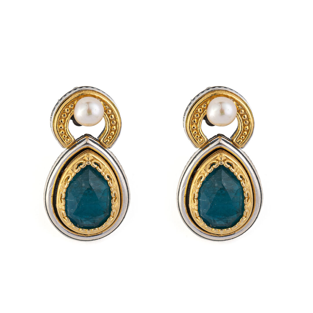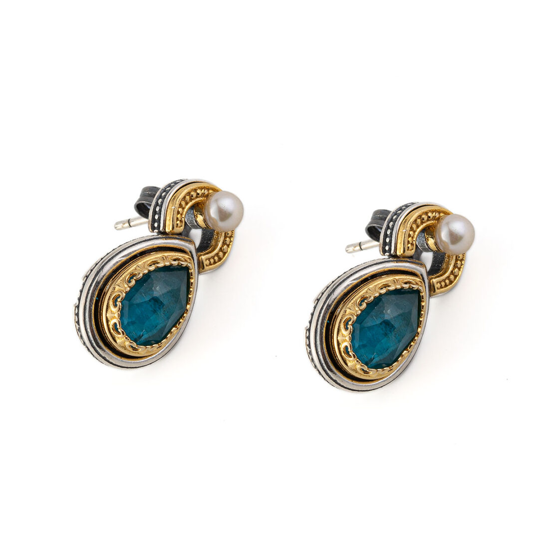 Byzantine Stud Earrings with Apatite – Sterling Silver 925 Gold Plated