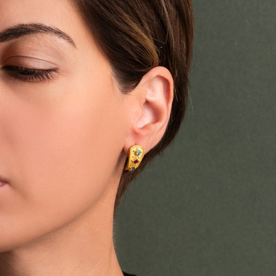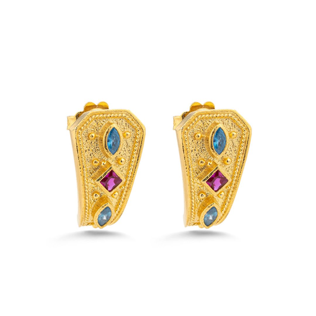 Byzantine Stud Earrings with Multicolored Zircon Stones