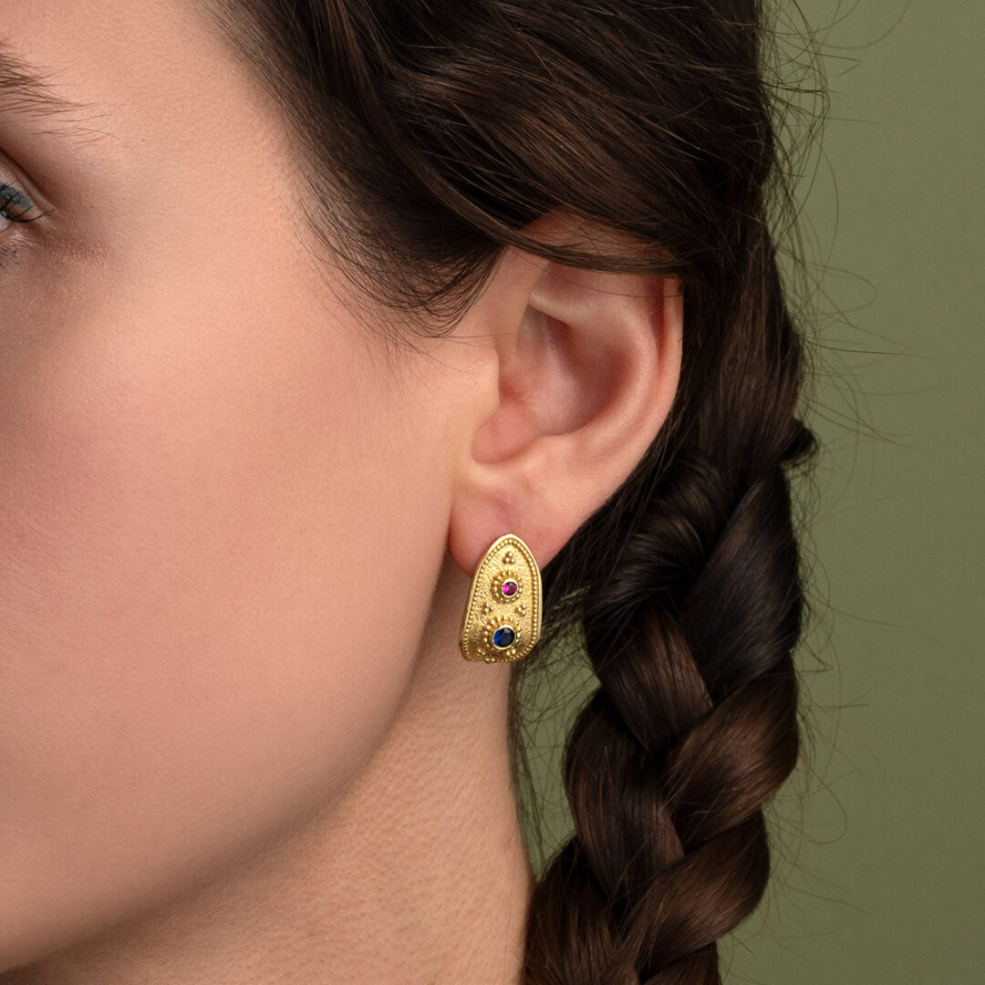 Byzantine Stud Earrings with Zircon – Sterling Silver and 18K Gold Plating
