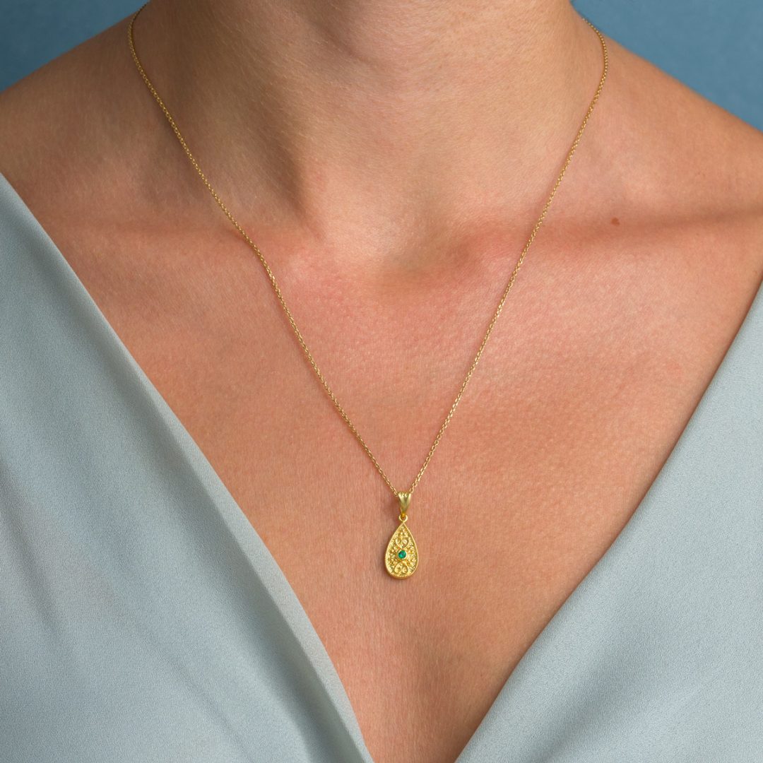 Byzantine Teardrop Pendant in Gold Plated 925 Silver with Zircon
