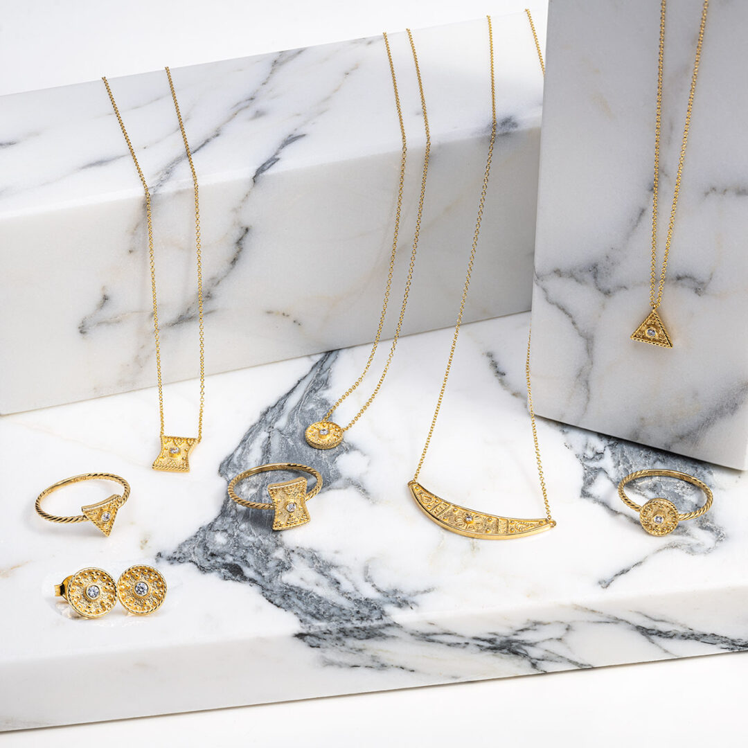 The collection contains jewelry with beautiful zircon stones.