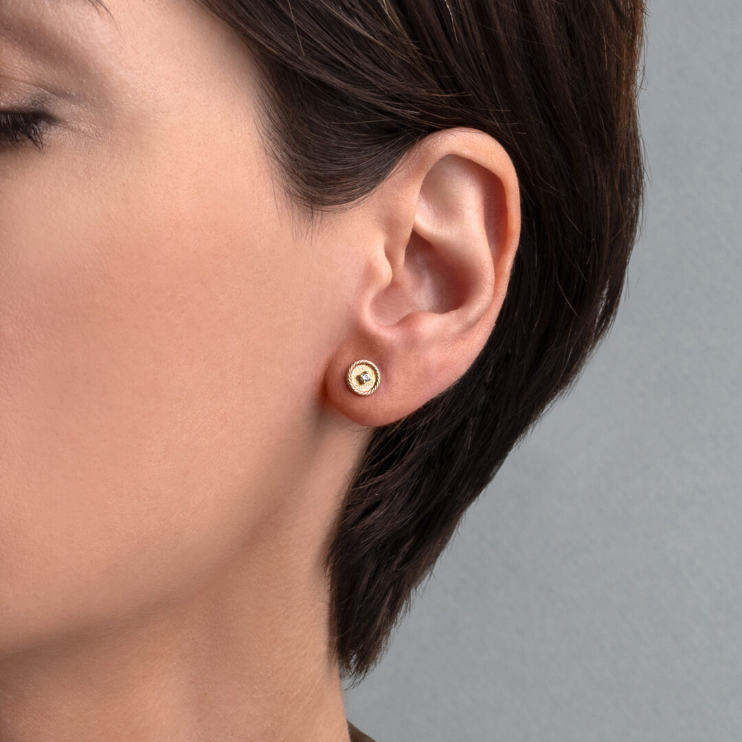 Circle Stud Earrings with Zircon – 9K Gold