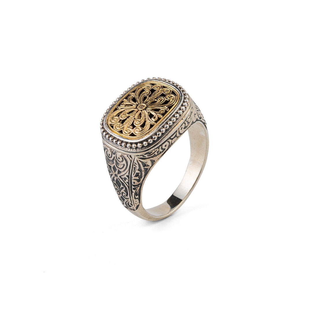 Classic byzantine ring in 18K Gold and Sterling Silver
