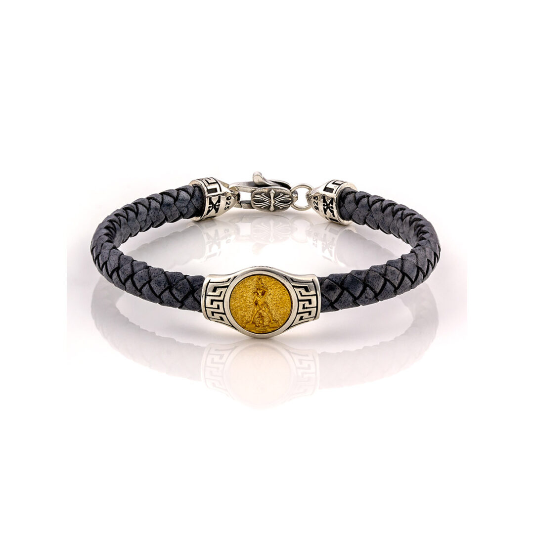 Colossus of Rhodes Leather Bracelet – 925 Sterling Silver