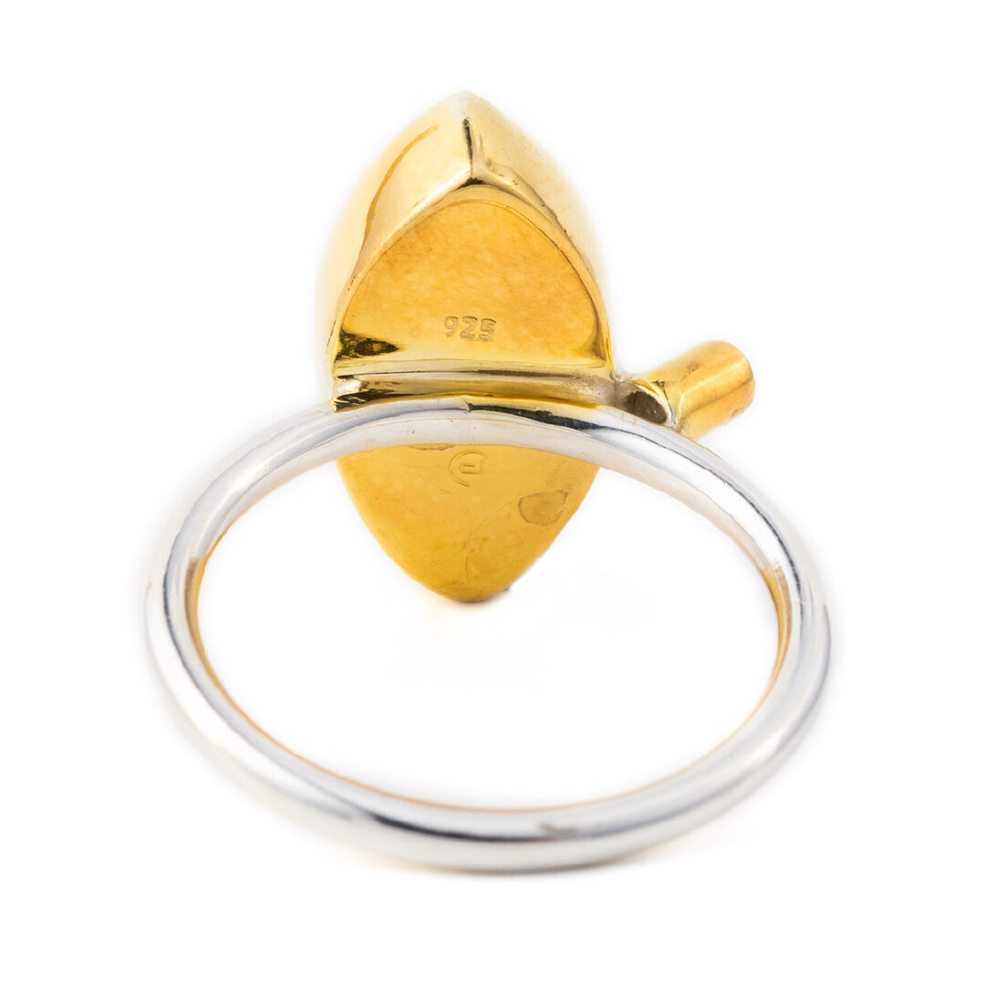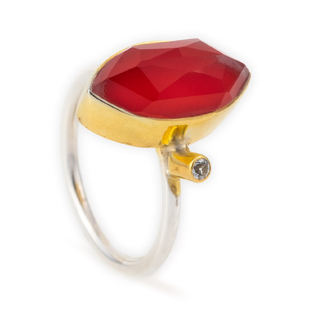 A very beautiful ring decorated with coral gemstone in shape tear.