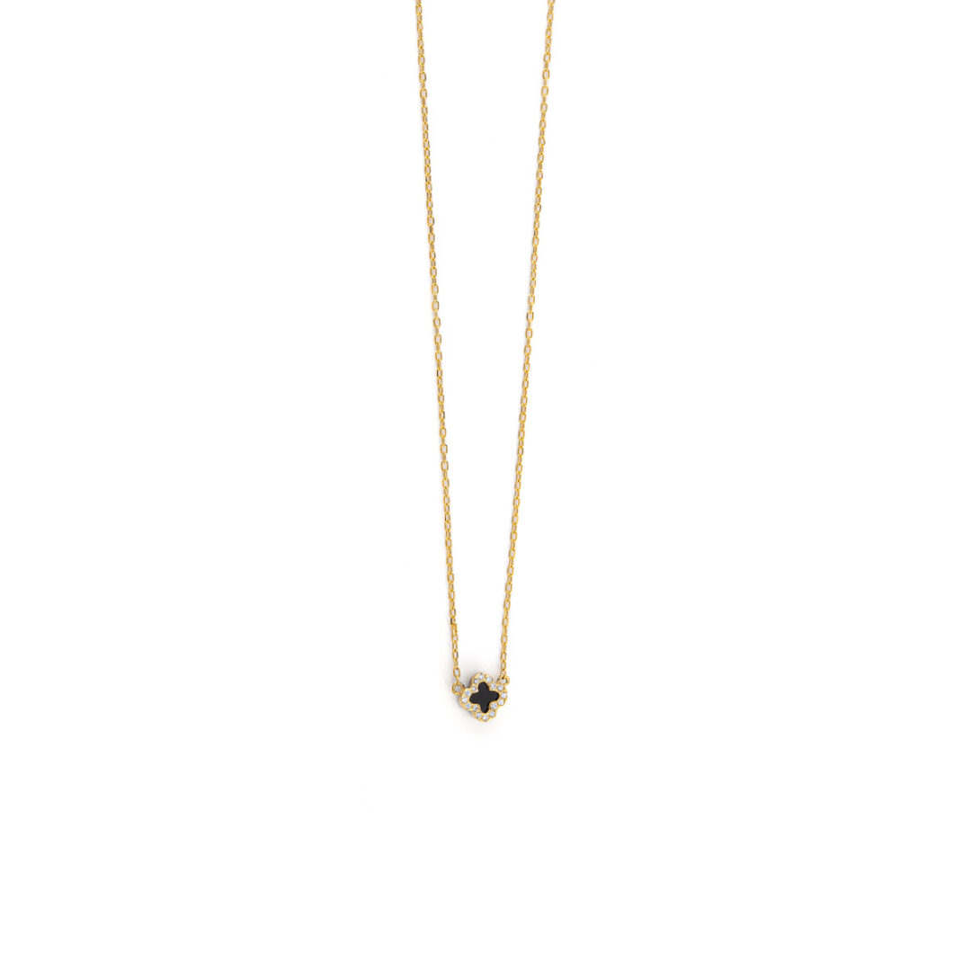 Cross in yellow gold 14k, adorned with white zircon stones.