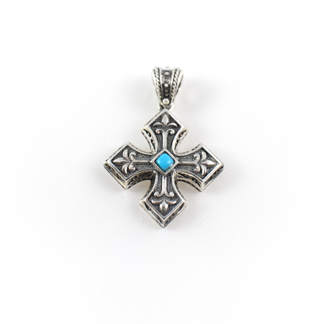 Turquoise Silver Cross Pendant – Yianni Jewelry