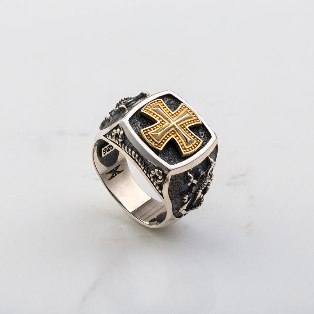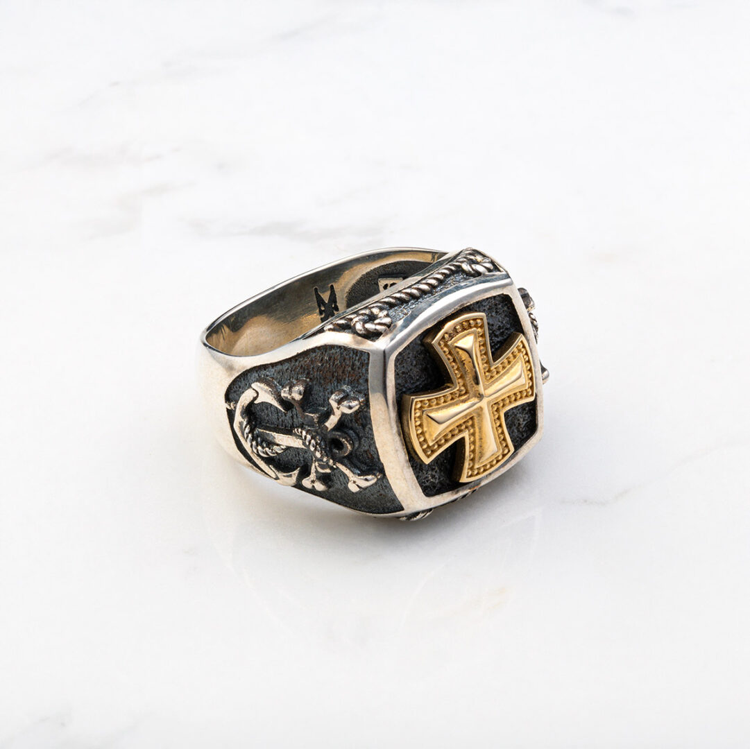 Cross Ring – 14k Solid Gold & Sterling Silver