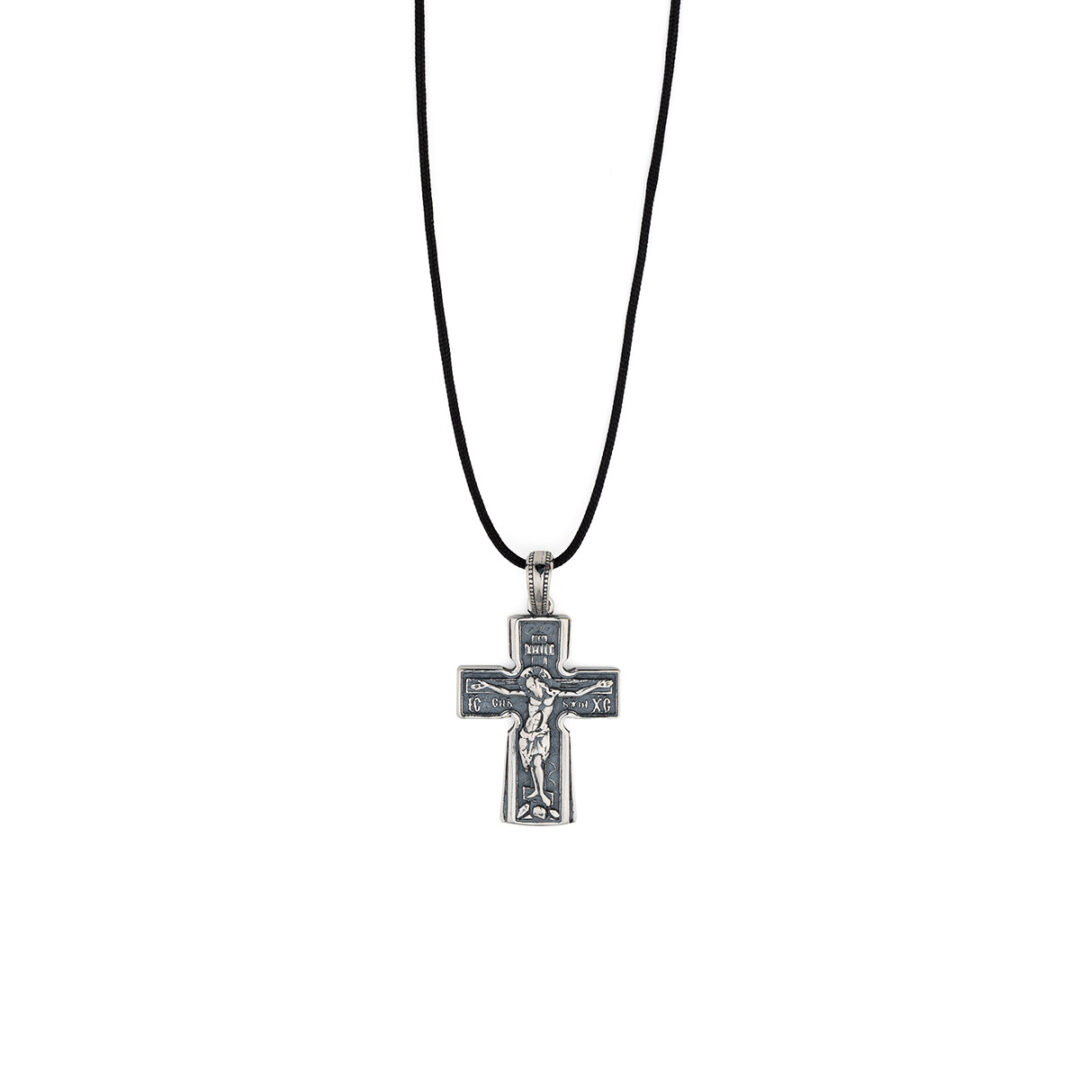 Crucifix Jesus Cross Cord Necklace – 925 Sterling Silver