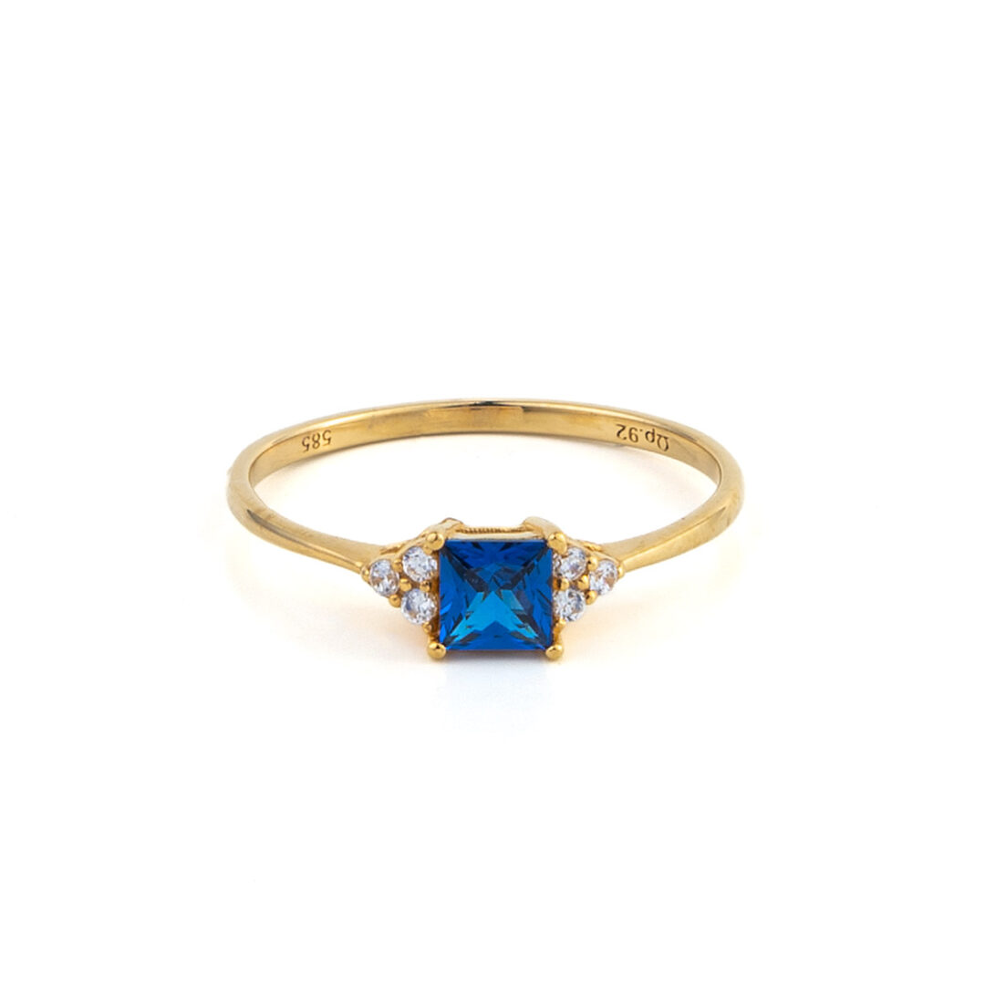 Dainty Blue Stone Ring – 14K Yellow Gold