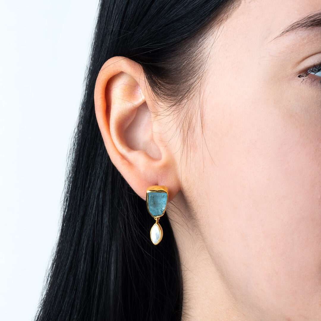Dangle Earrings with Aquamarine and Pearl