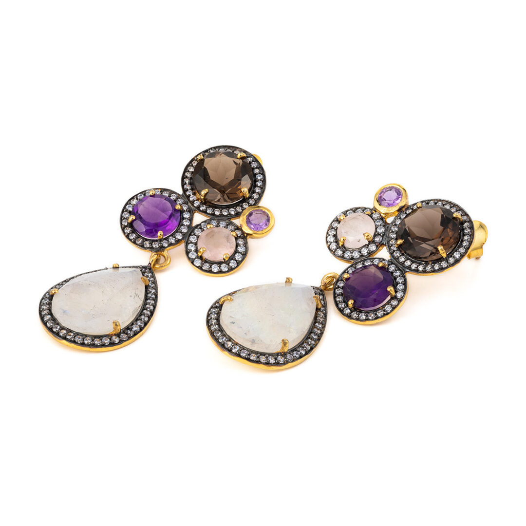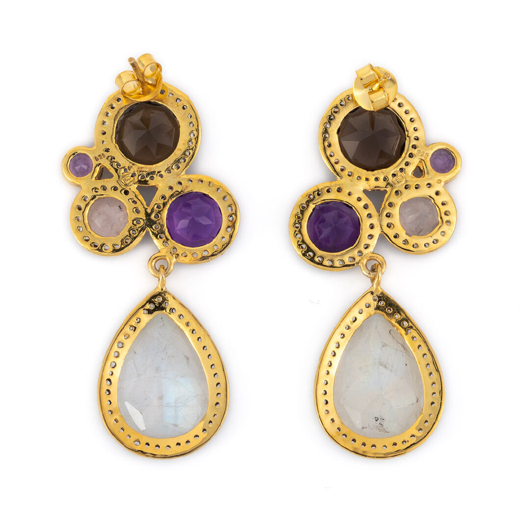 Dangle Multi Stone Earrings ~ Moonstone & Amethyst & Smoked Quartz