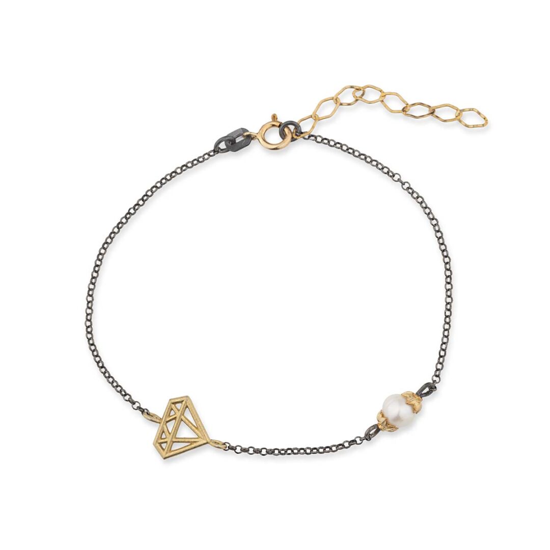Diamond Chain Bracelet with Pearl – 925 Sterling Silver