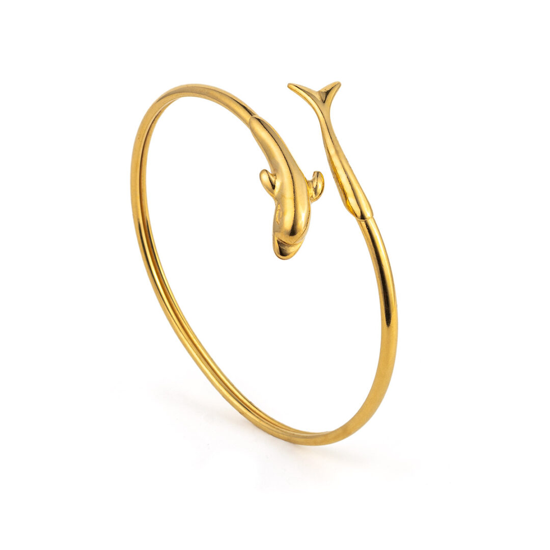 Dolphins Cuff Bracelet – 925 Sterling Silver Gold Plated