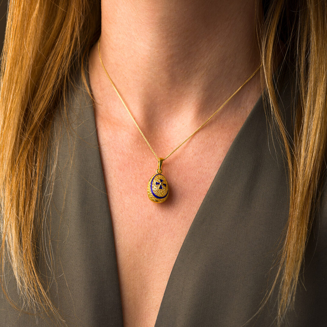 Egg Pendant Necklace with Cross – Sterling Silver Gold Plated and Enamel