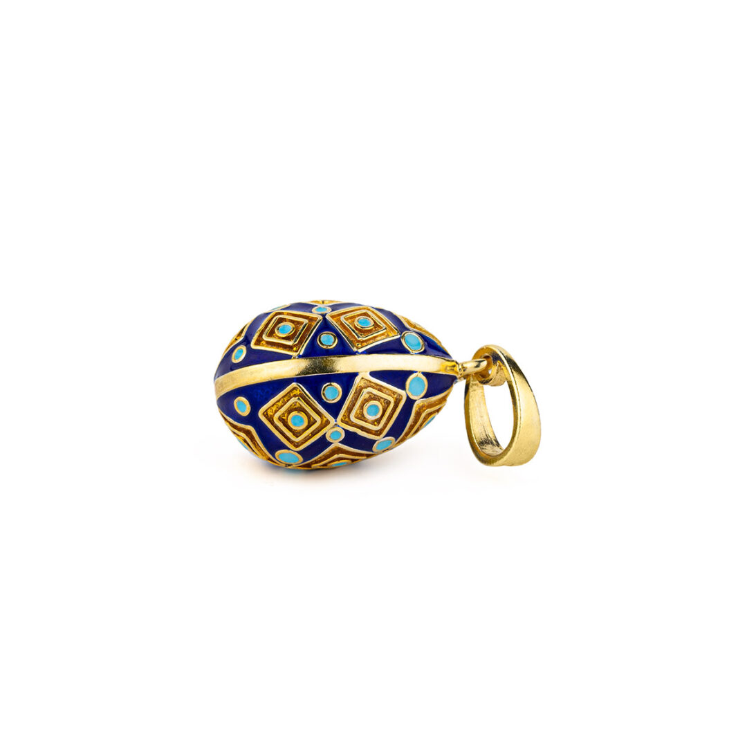 A beautifully crafted egg-shaped pendant, made of 925 sterling silver and gold plated decorated with enamel and square motifs.