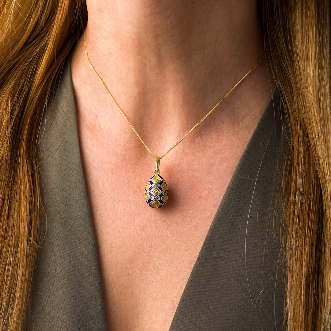 Egg pendant necklace with Square Motifs – Sterling Silver Gold Plated with Enamel