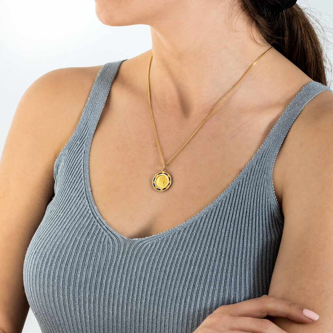 Enamel Goddess Athena Coin Pendant – 14K Gold