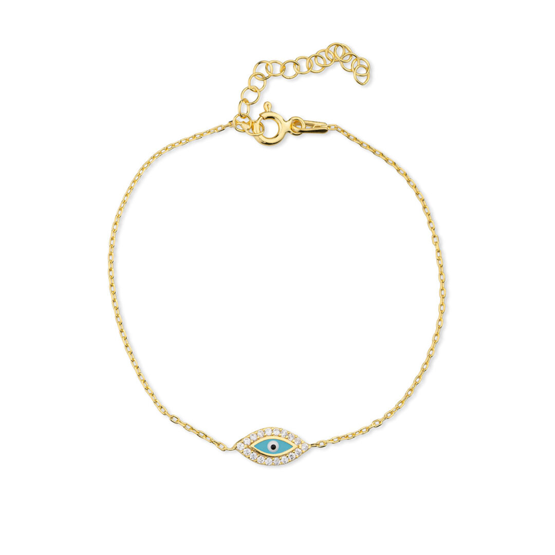 Evil Eye Bracelet with Zircon in Sterling Silver and Gold Plated