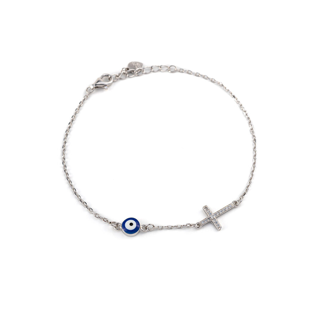Bracelet with evil eye and cross, decorated with zircon.