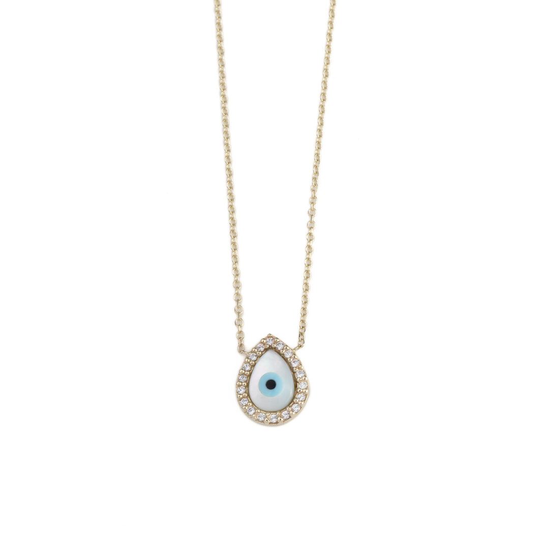 Evil Eye Drop and Zircon Necklace – 9K Gold