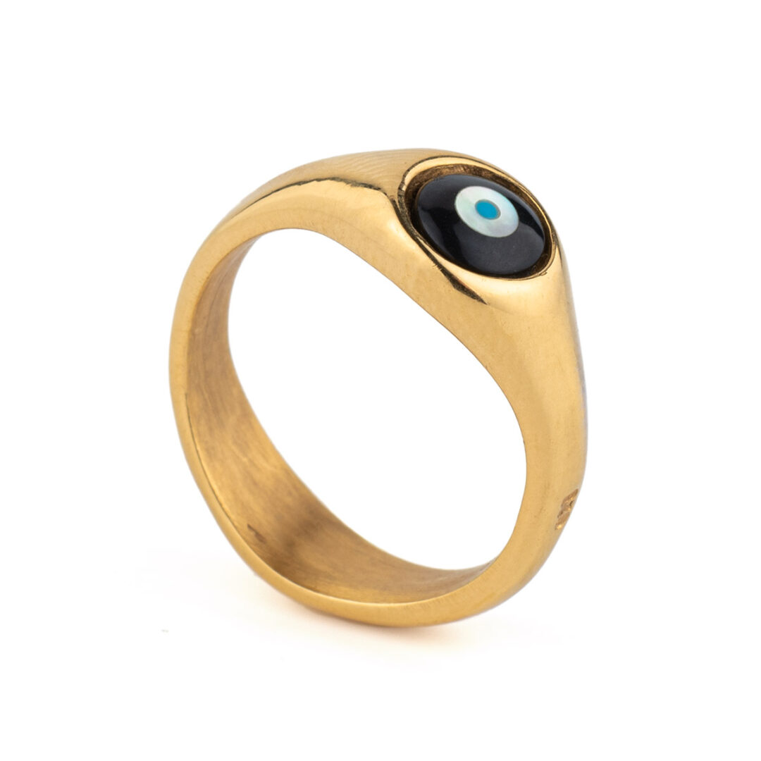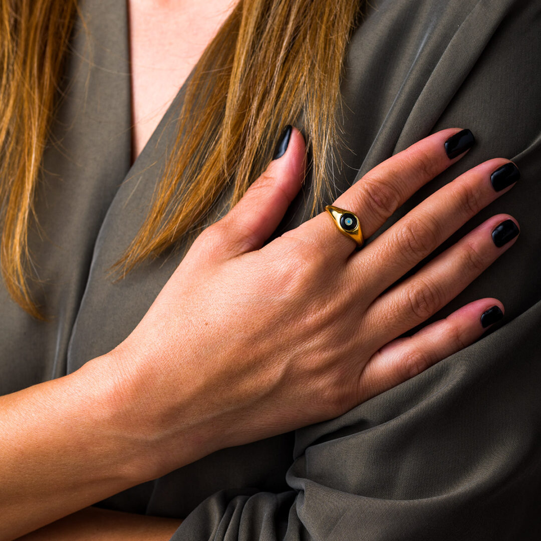Evil Eye Fildisi Onyx Ring – Sterling Silver and Gold Plated