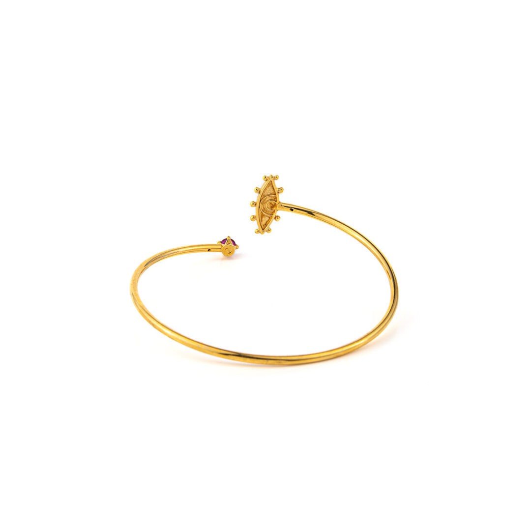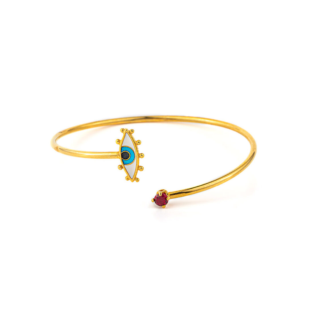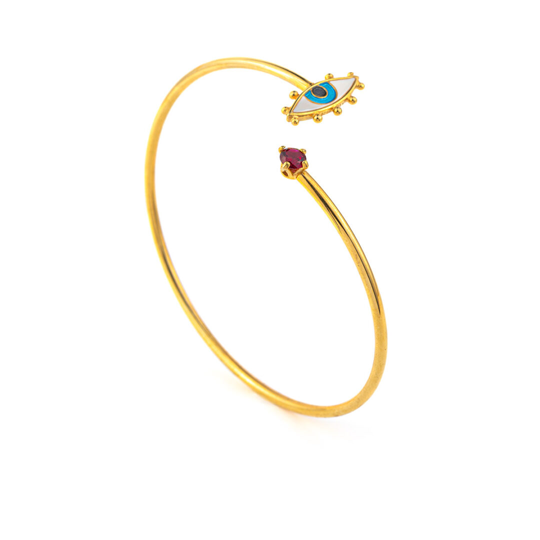Sterling silver and gold plated bangle bracelet with enamel eye and zircon.