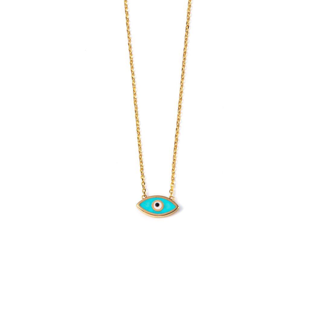 Evil Eye Necklace – 14K Yellow Gold with Turquoise Enamel