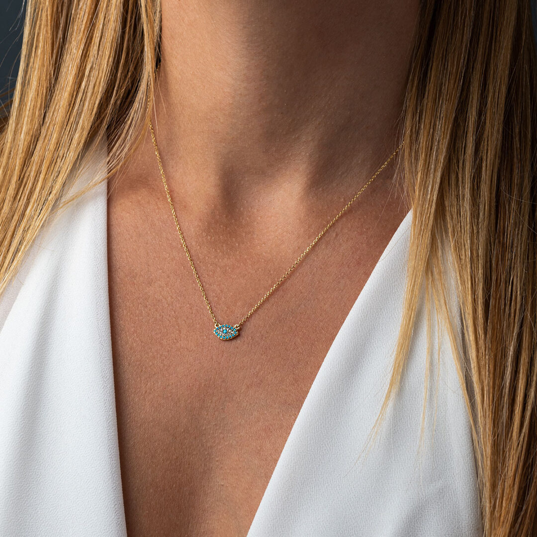 Evil Eye Necklace with Turquoise White Zircon – 9K Gold
