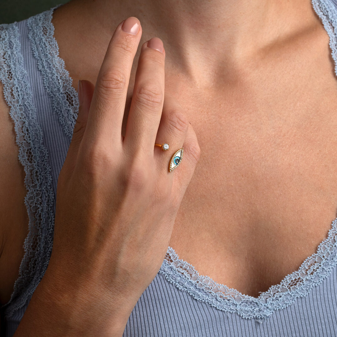 Evil Eye Ring with enamel – Sterling Silver & Gold Plated