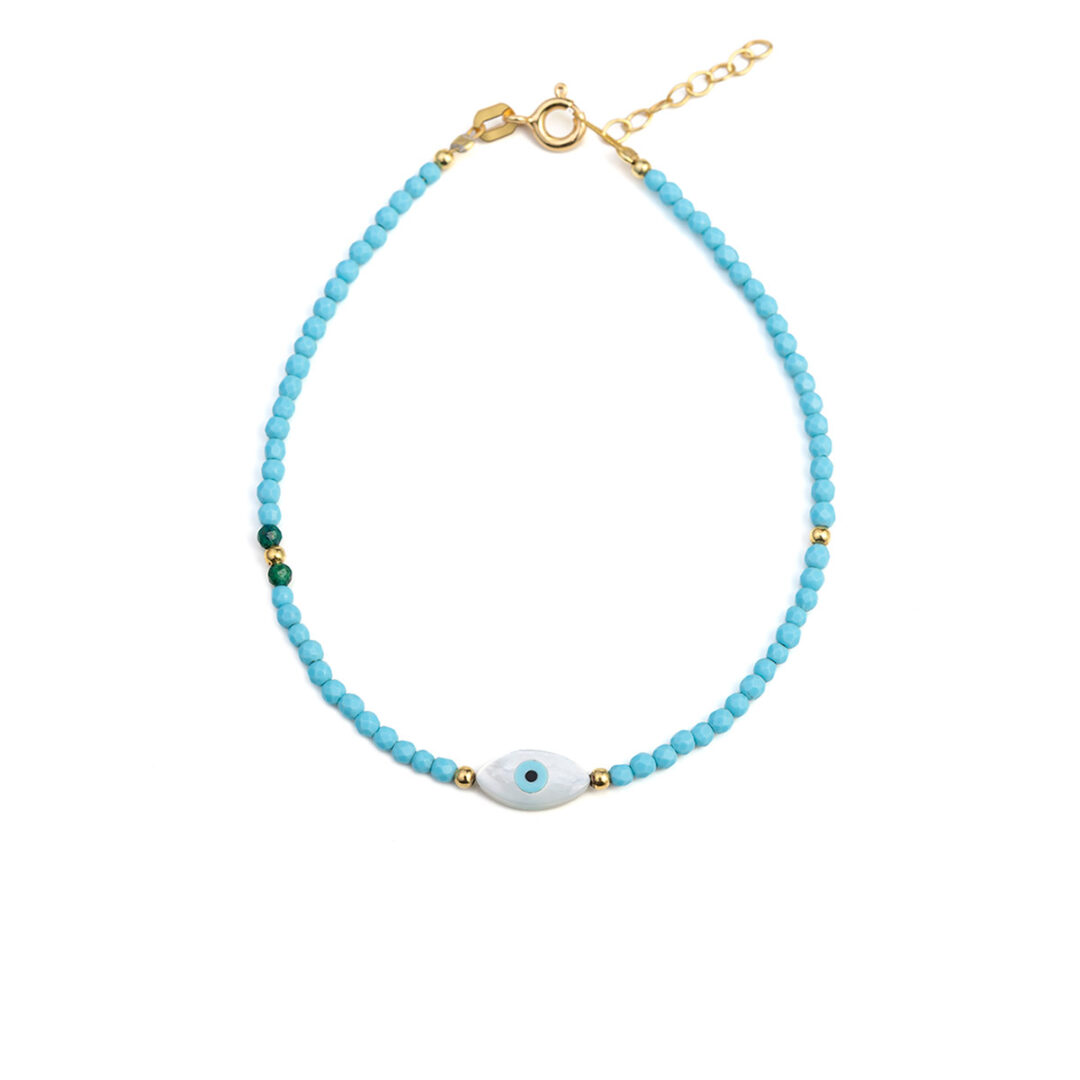 The symbol and superstition of the evil eye is one of the strongest symbolic images in the world. The earliest known evidence for belief in the evil eye goes back to ancient Greece and Rome. It is supposed to wear off evil to anyone who wears it and various cultures believe in that, however in Greece it’s blue because at that time blue eyes were not so common and were thought to give the evil eye, so the blue is like a mirror to them. Nowadays it’s widely known and has become a trend.
