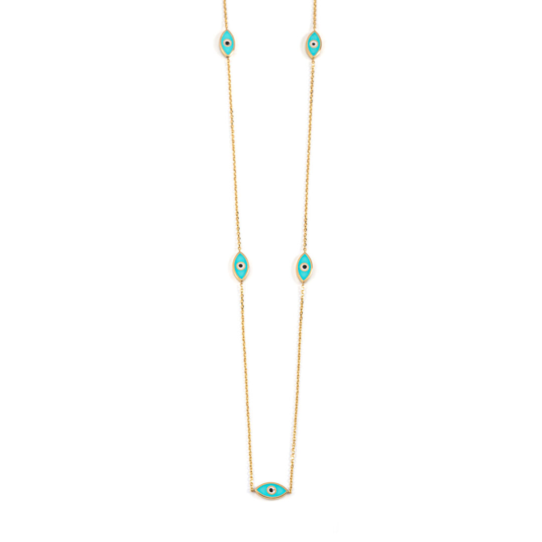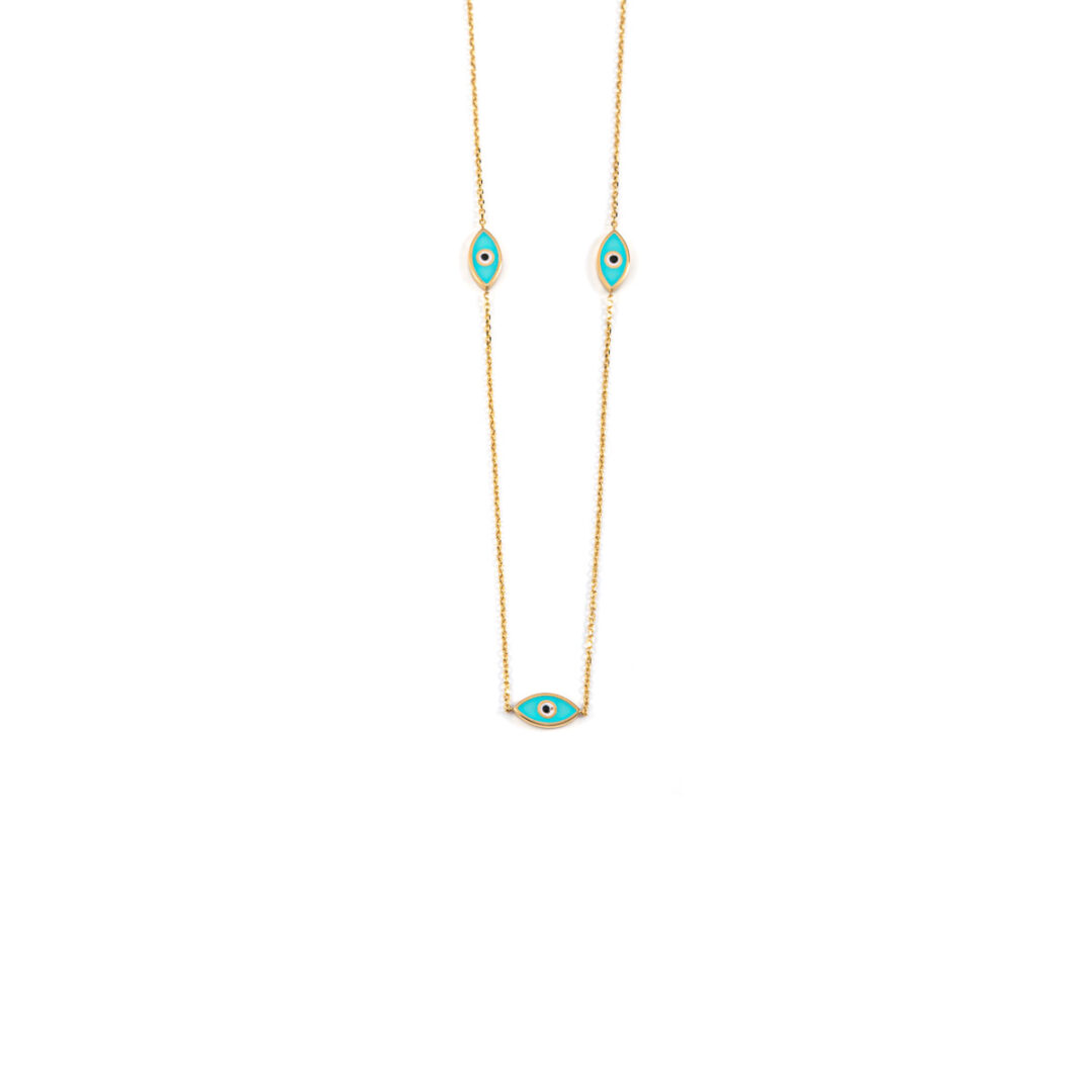 Evil Eyes Necklace – 14K Yellow Gold with Turquoise Enamel
