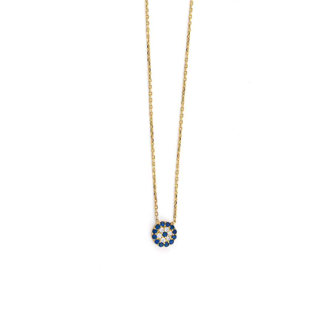 Eye Necklace with White and Blue Zircons – 9K Yellow Gold