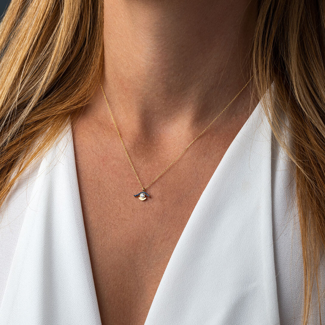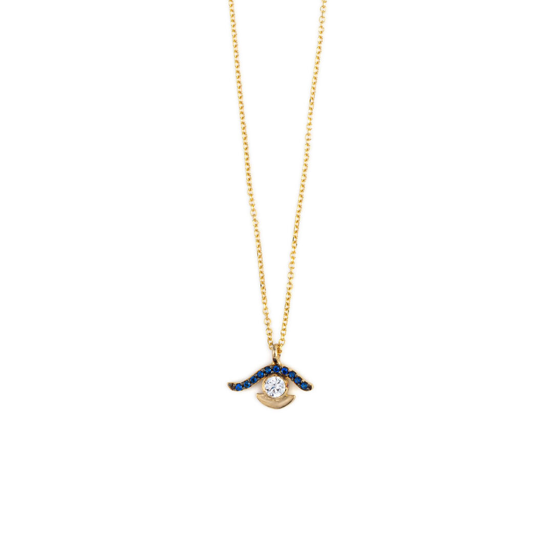 Eye Necklace with White Zircon – 14K Gold