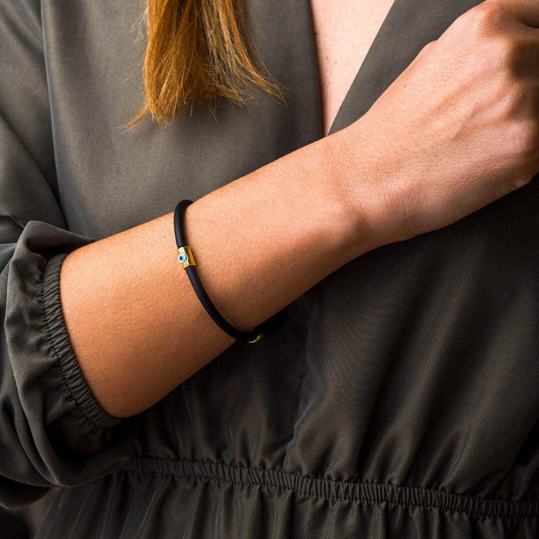 Fildisi Evil Eye Caoutchouc Bracelet – Sterling Silver and Gold Plated