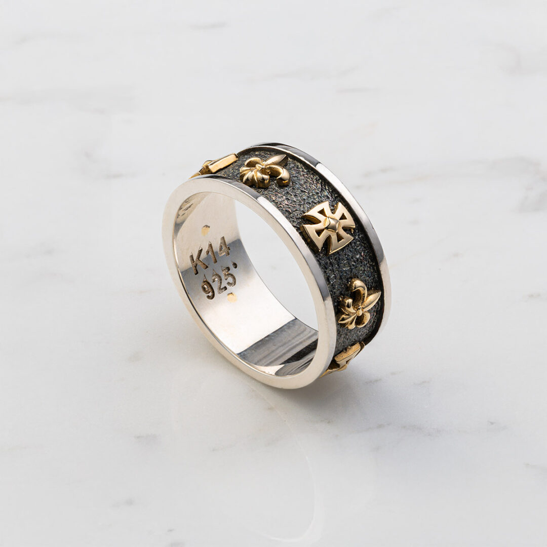 Fler Des Lis Cross Ring – 14k Solid Gold & Sterling Silver