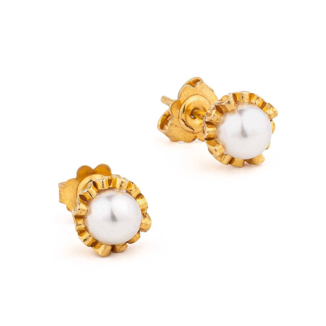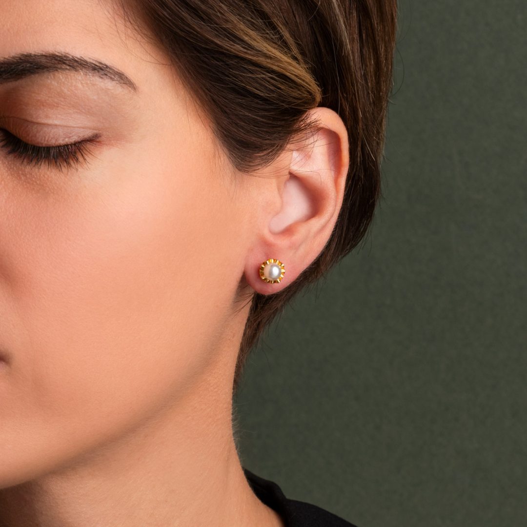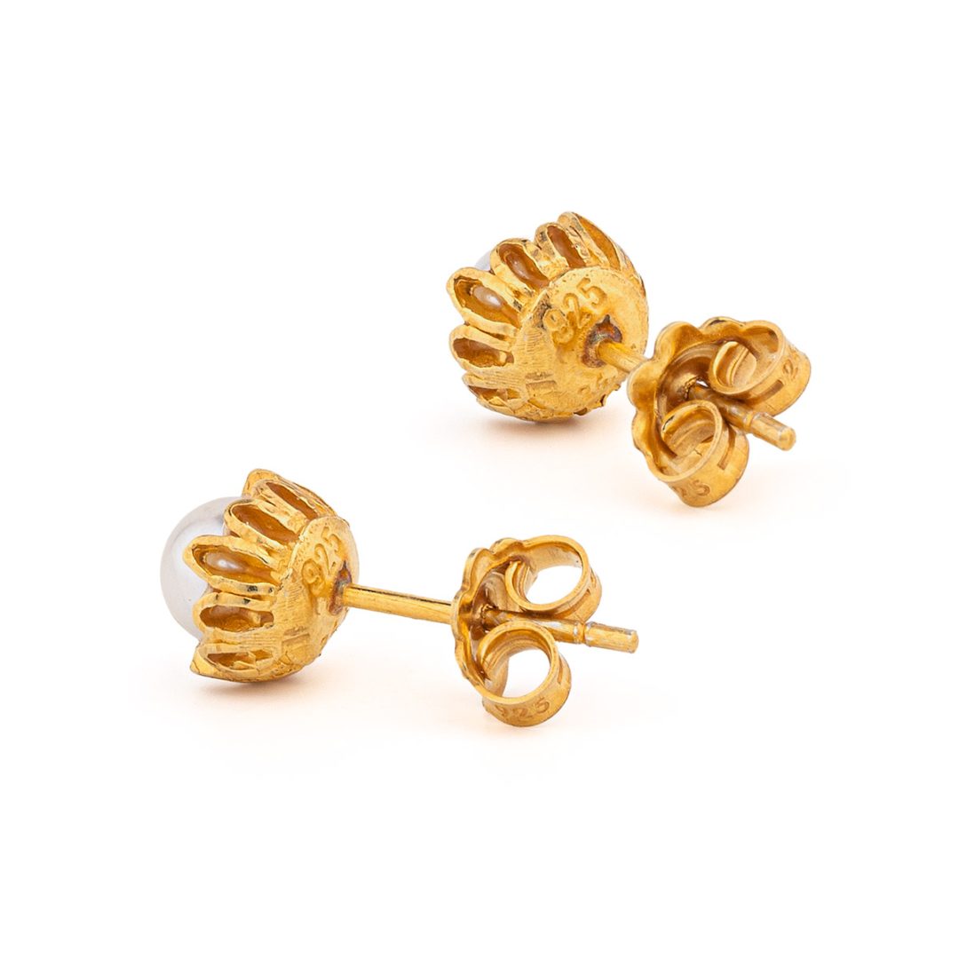 Flower Pearl Stud Earrings in 925 Sterling Silver and Gold Plated