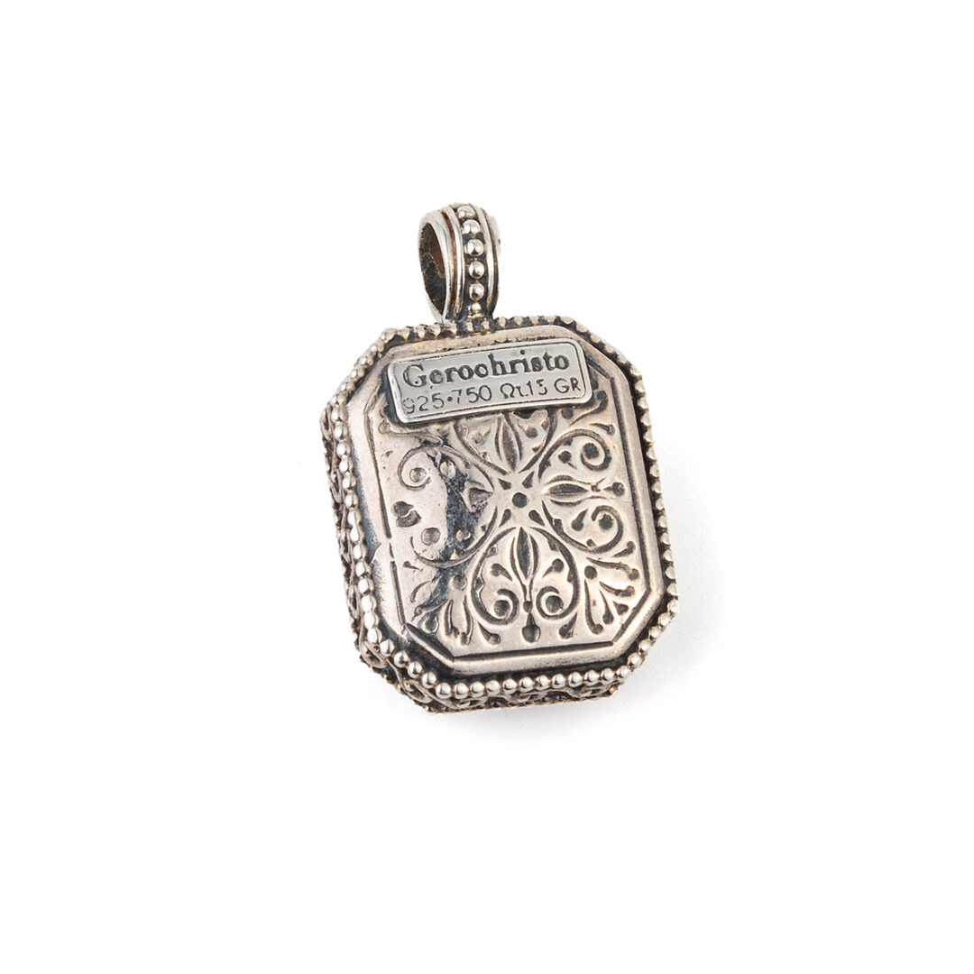 Garden Shadows polygon Pendant in 18K Gold and Sterling Silver with Ruby