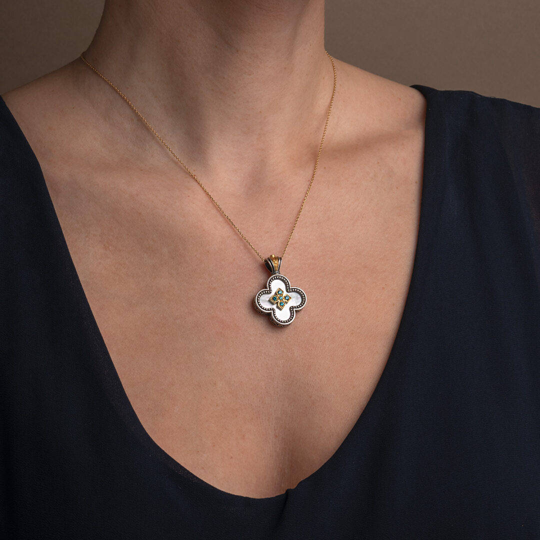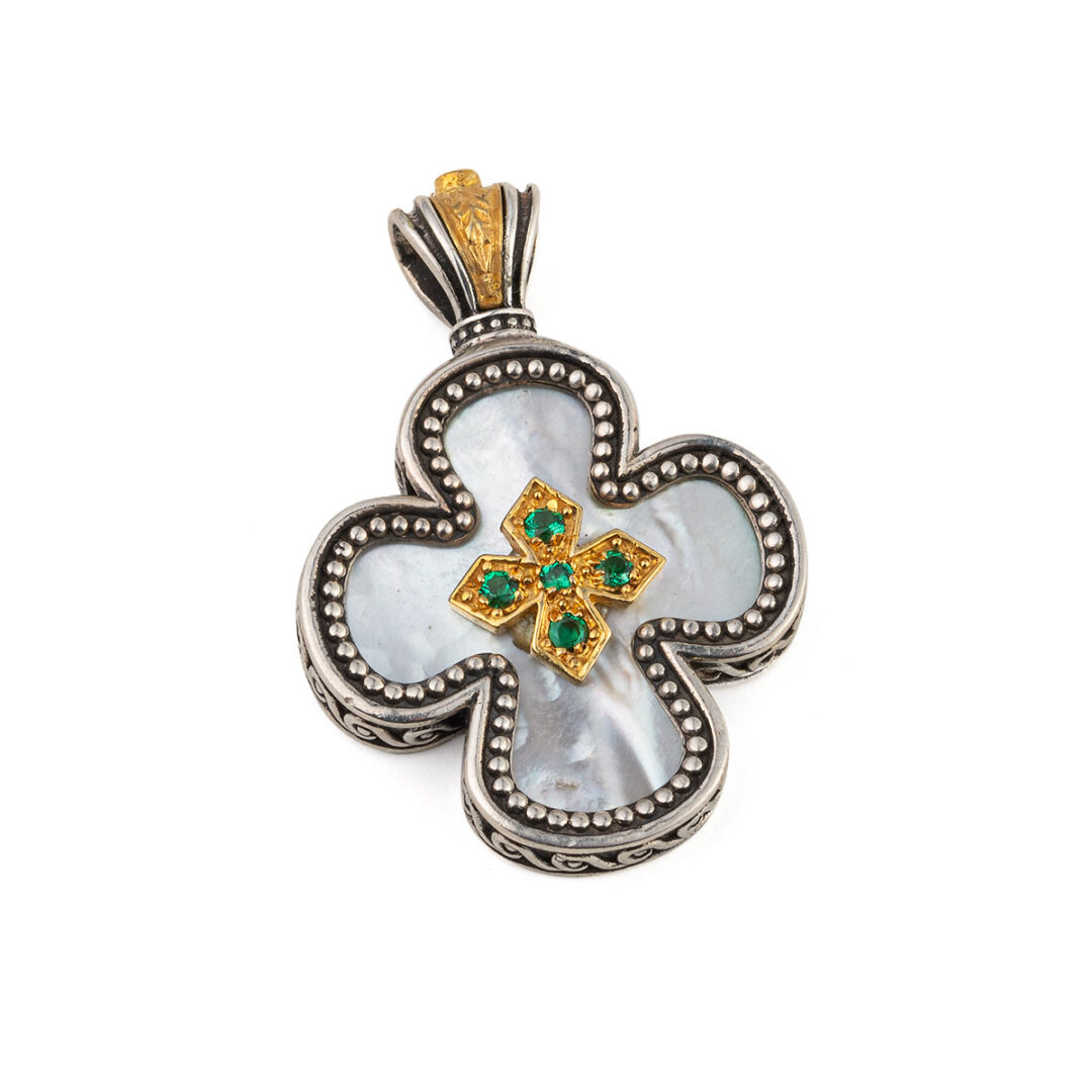 Gerochristo – Cross in sterling silver with Gold plated parts mother of pearl and zircons