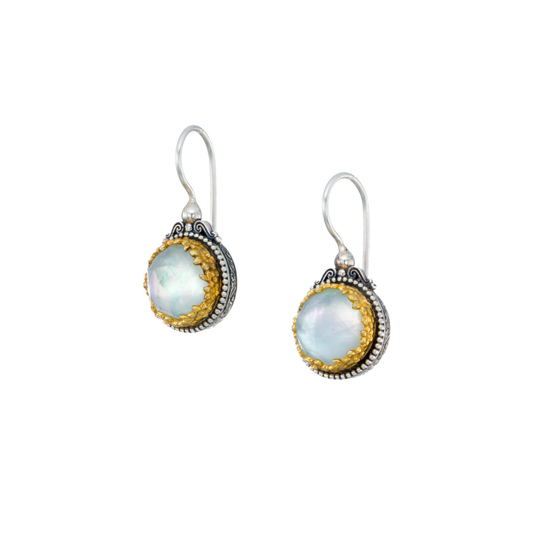 Earrings in sterling silver with gold plated parts and doublet stones.