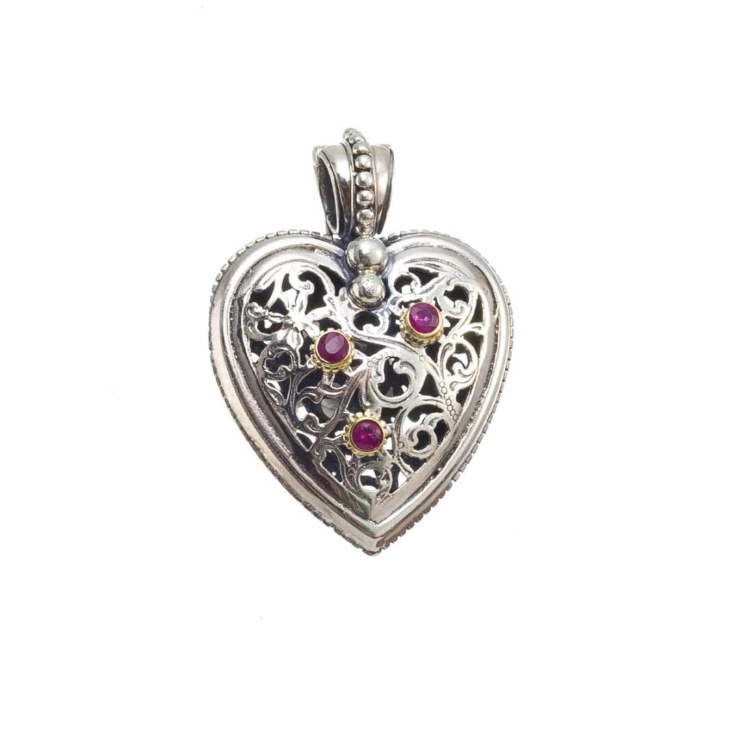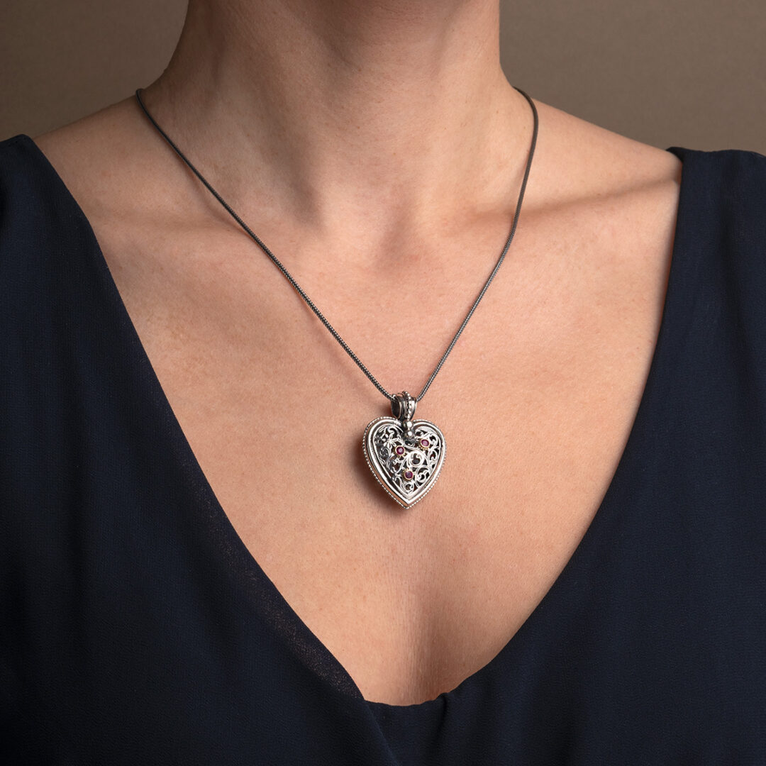 Gerochristo – Garden Shadows Heart pendant in 18K Gold and Sterling Silver with rubies