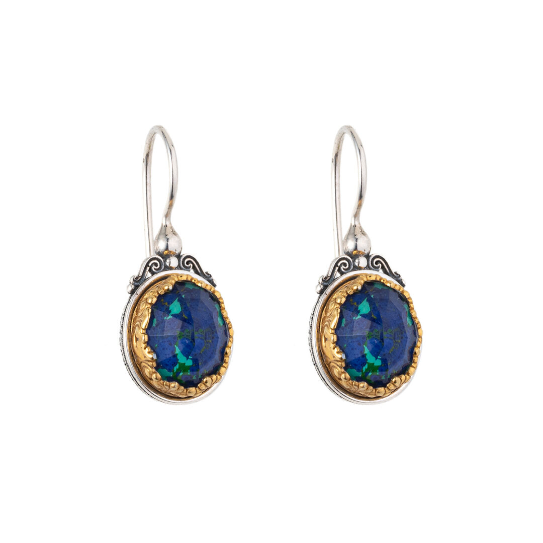 Earrings in sterling silver with gold plated parts and doublet stones.