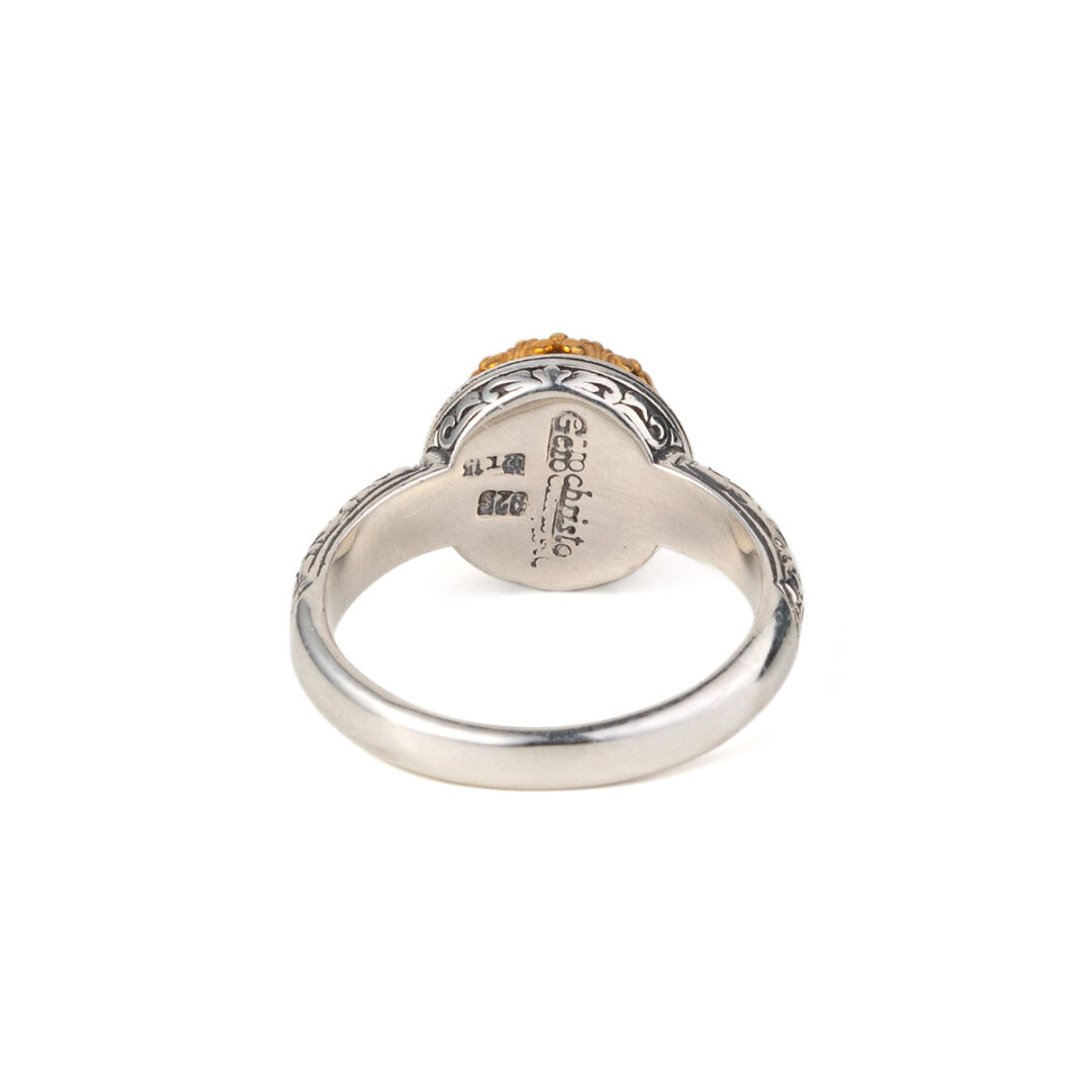 Ring in sterling silver with gold plated parts and doublet stone.
