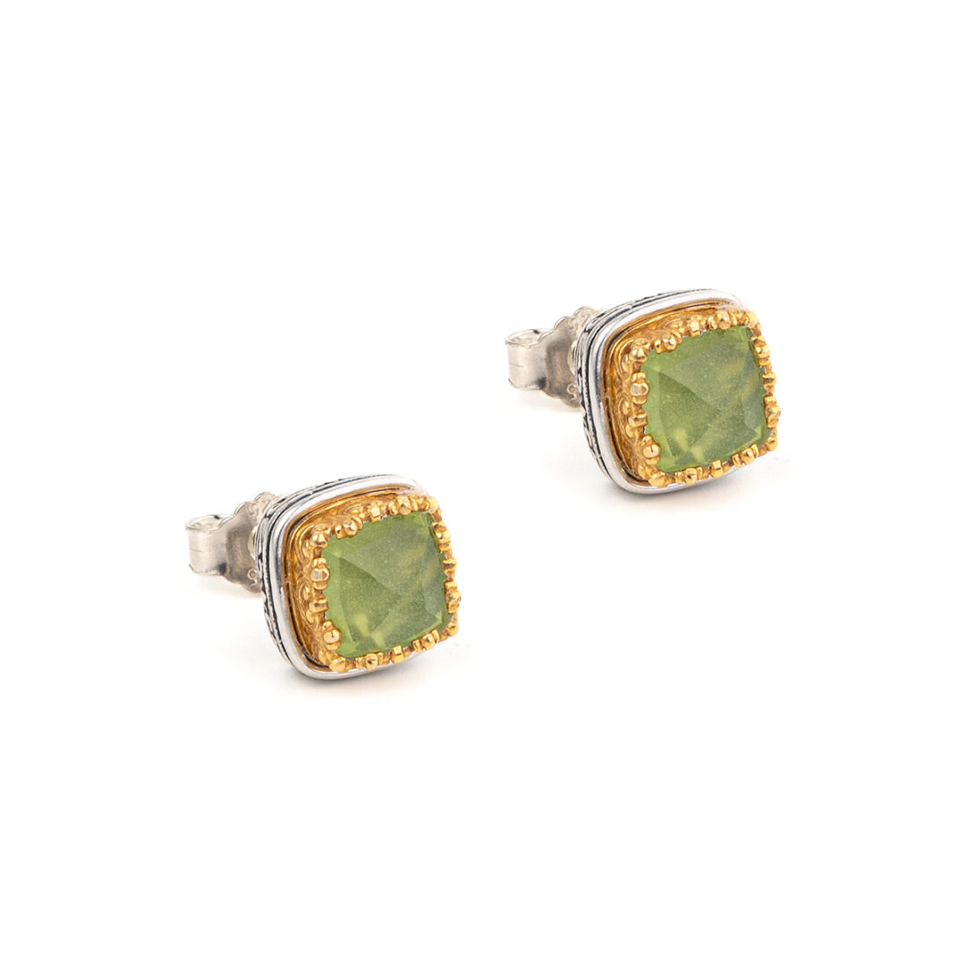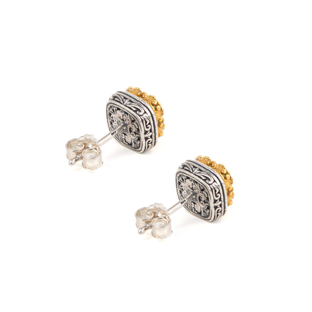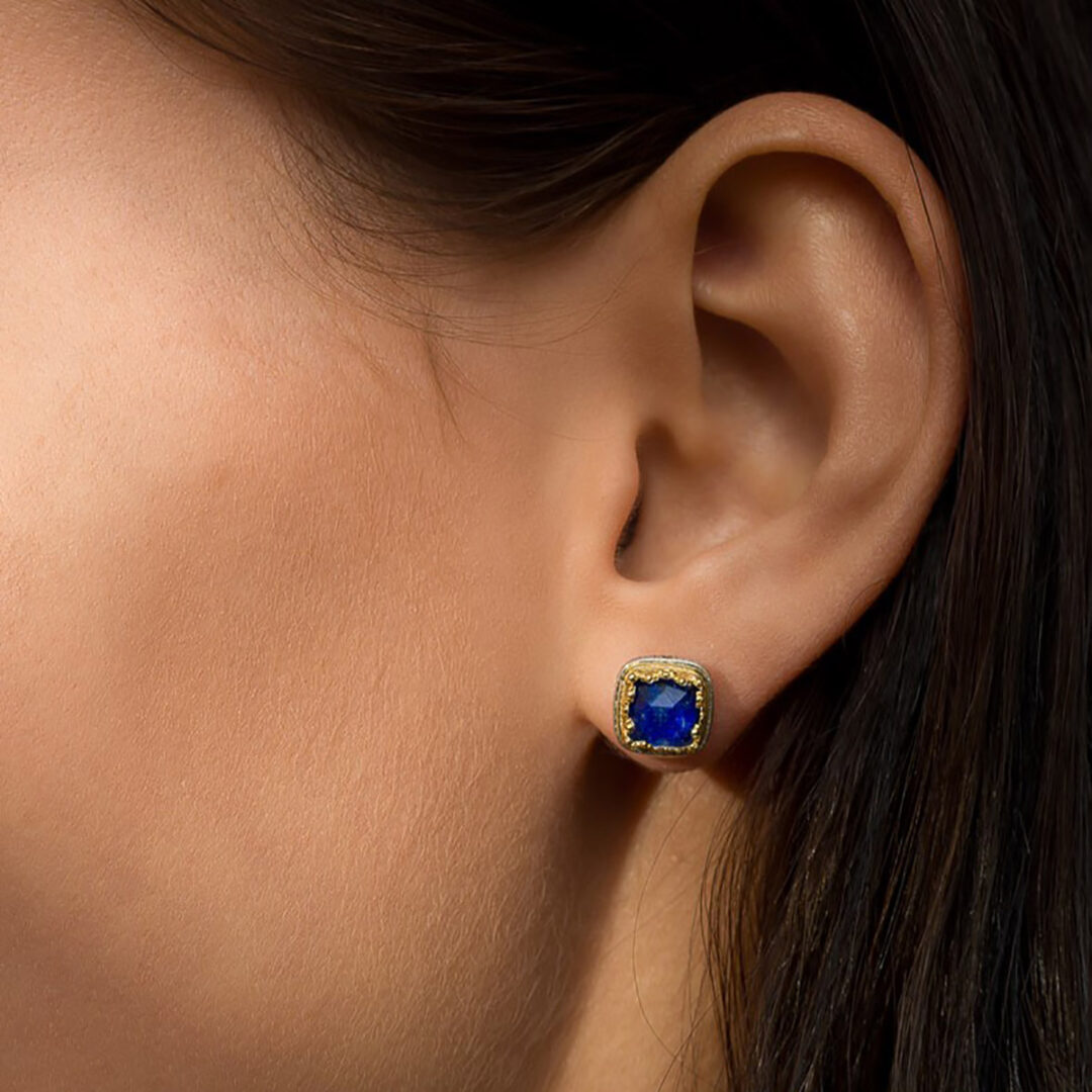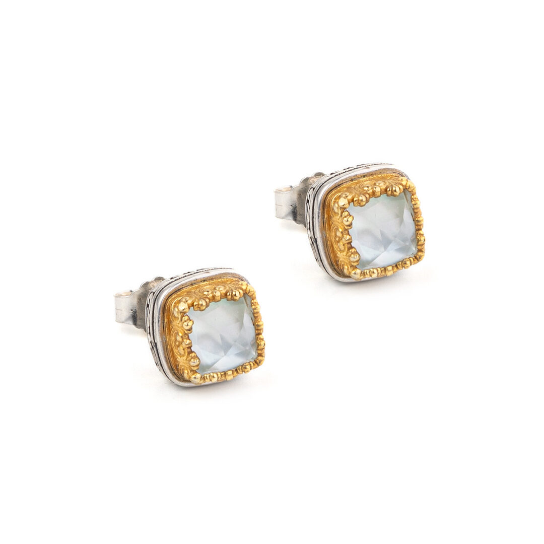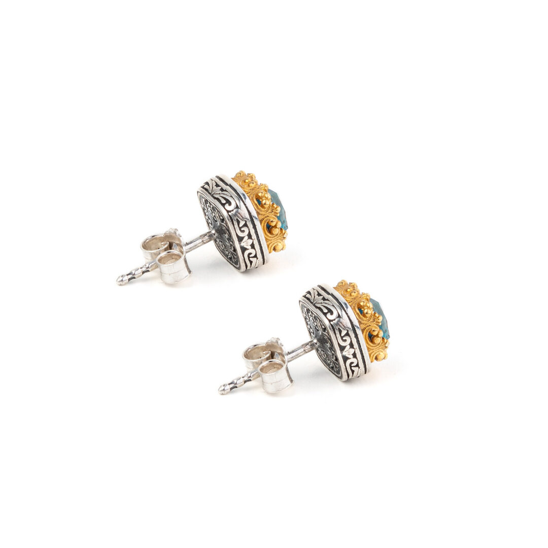 Stud earrings in sterling silver with gold plated parts and doublet stones.