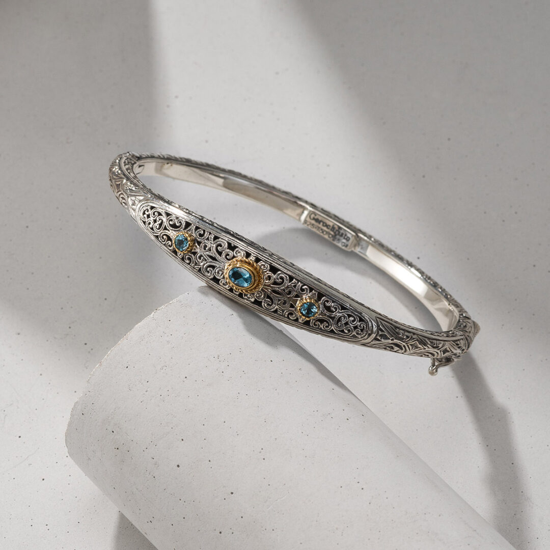 Bracelet in Sterling Silver and 18K Gold with blue topaz.